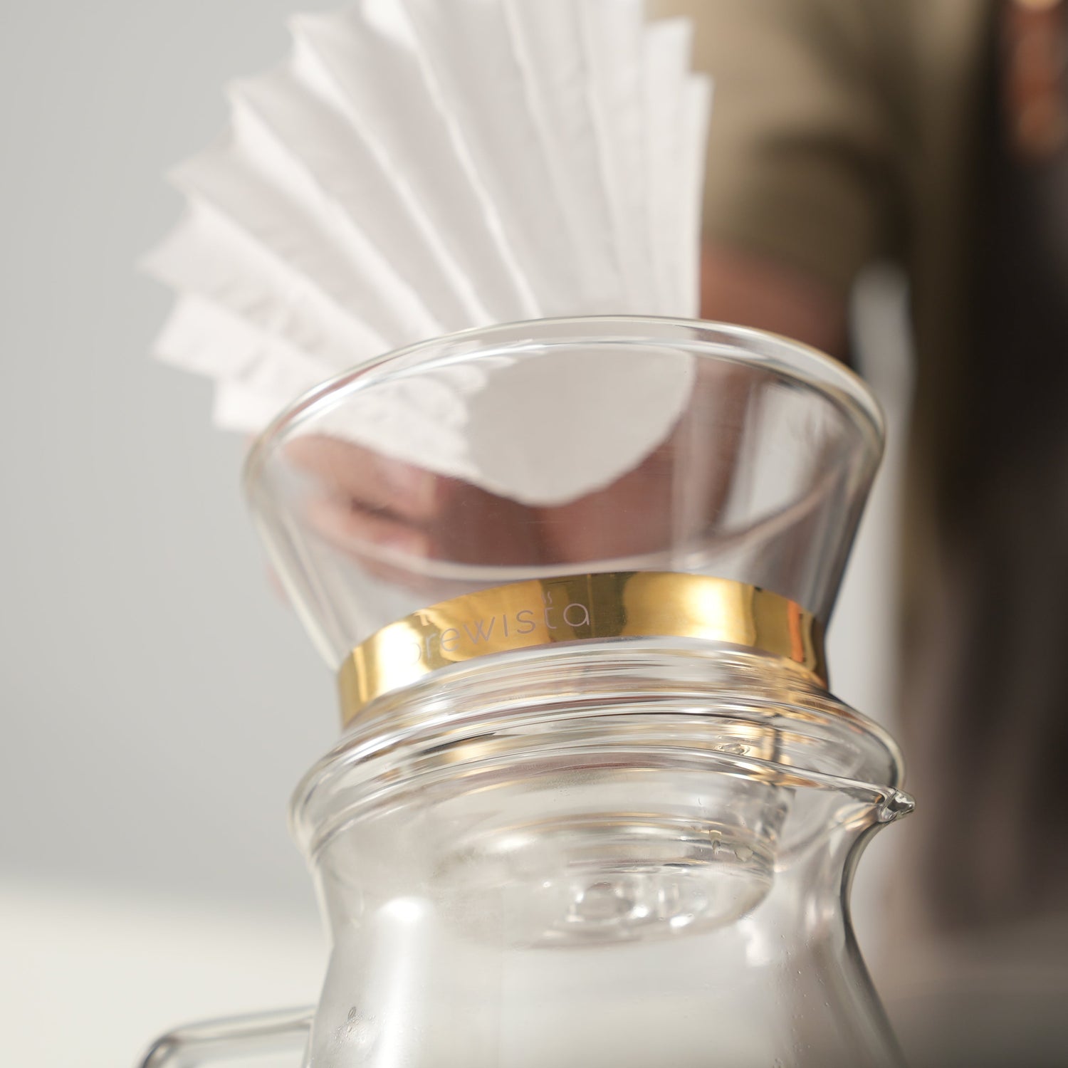 Crafted from high-quality borosilicate glass, the Target NEXT WAVE Duo features an insulated double-wall construction that maintains brewing temperature while remaining odorless and crystal clear. The transparent body allows full visibility of the brewing process — giving you control over bloom, flow rate, and extraction.