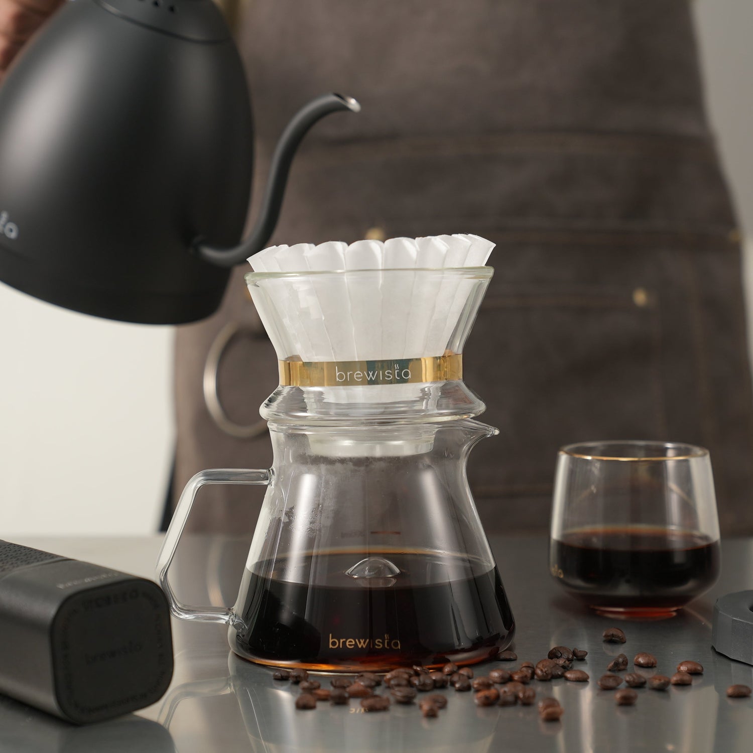 Precision meets innovation in the Brewista Target NEXT WAVE Duo — a premium double wall glass dripper designed for specialty coffee professionals and discerning home brewers alike. Part of the Brewista X Series, this dripper combines thermal stability, intelligent flow design, and refined aesthetics to elevate your pour over experience.